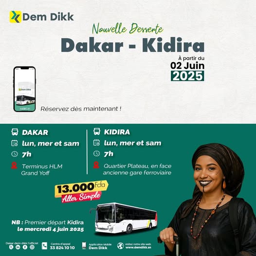 Avec Dem Dikk, l’équité territoriale prend le bus et se rapproche encore plus de vous. À partir du lundi 02 Juin 2025, Dem Dikk lance sa toute nouvelle desserte Dakar – Kidira.